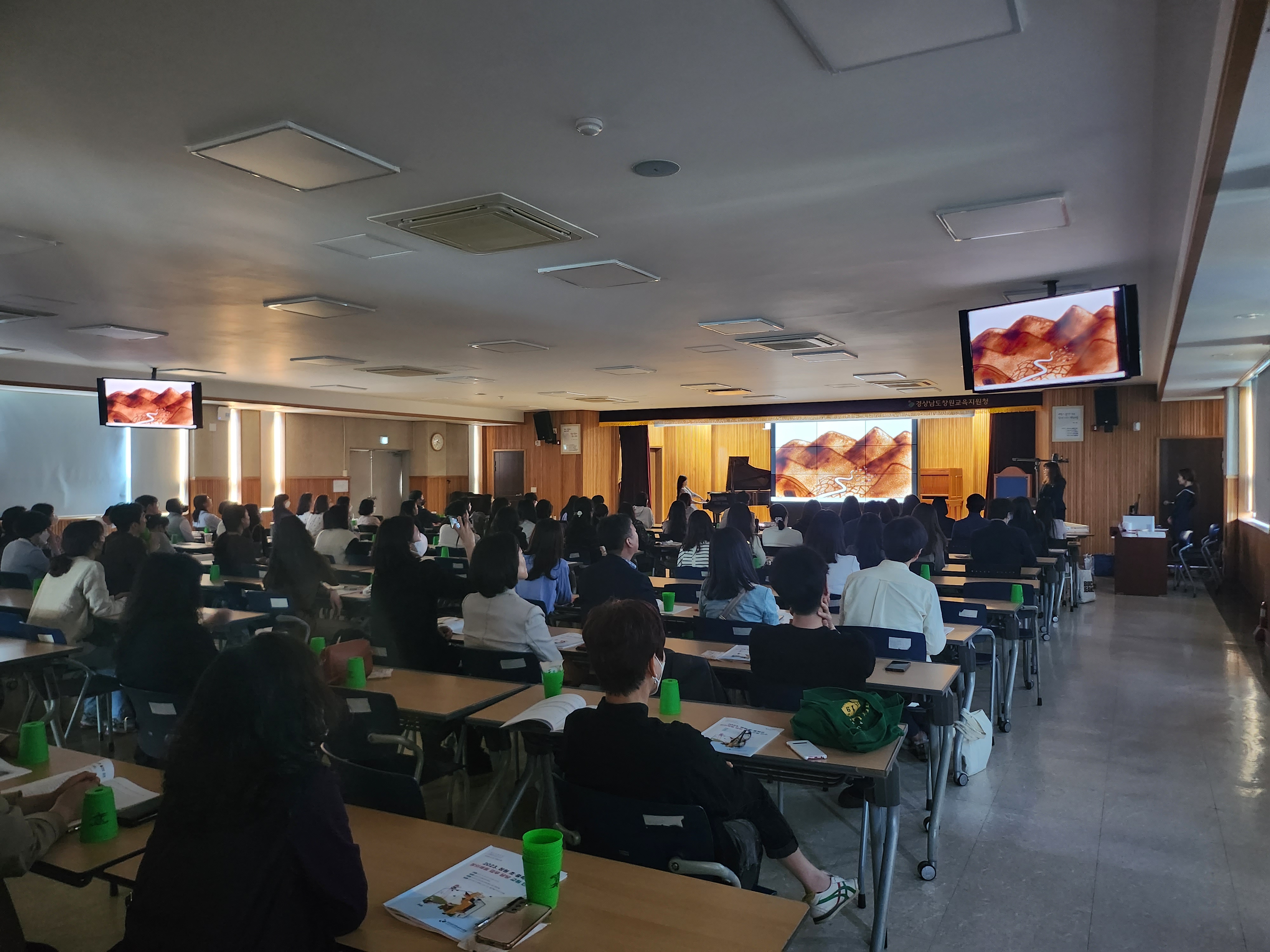 대회의실 초. 중학교 연수라 꽉 채운 의자들