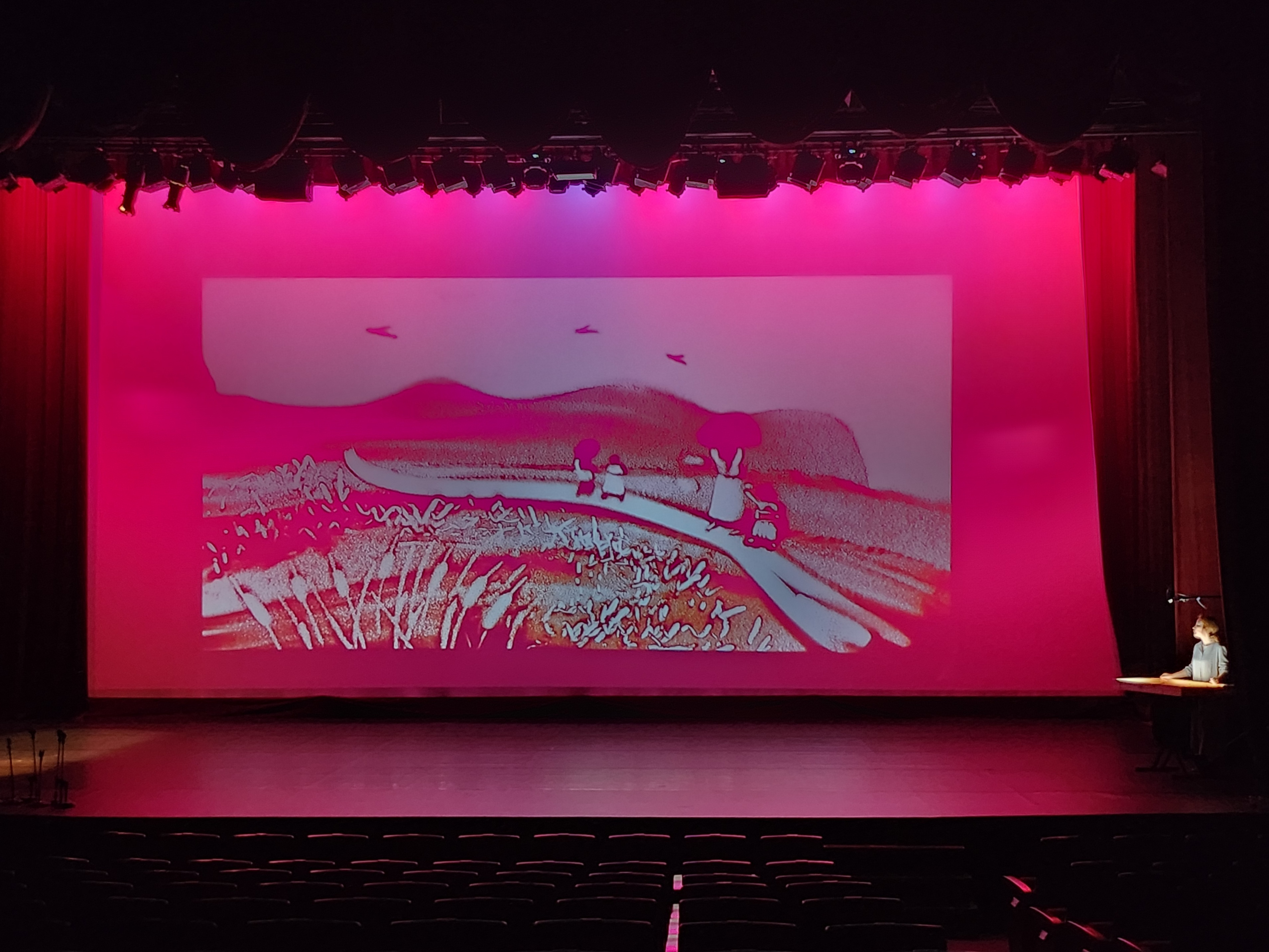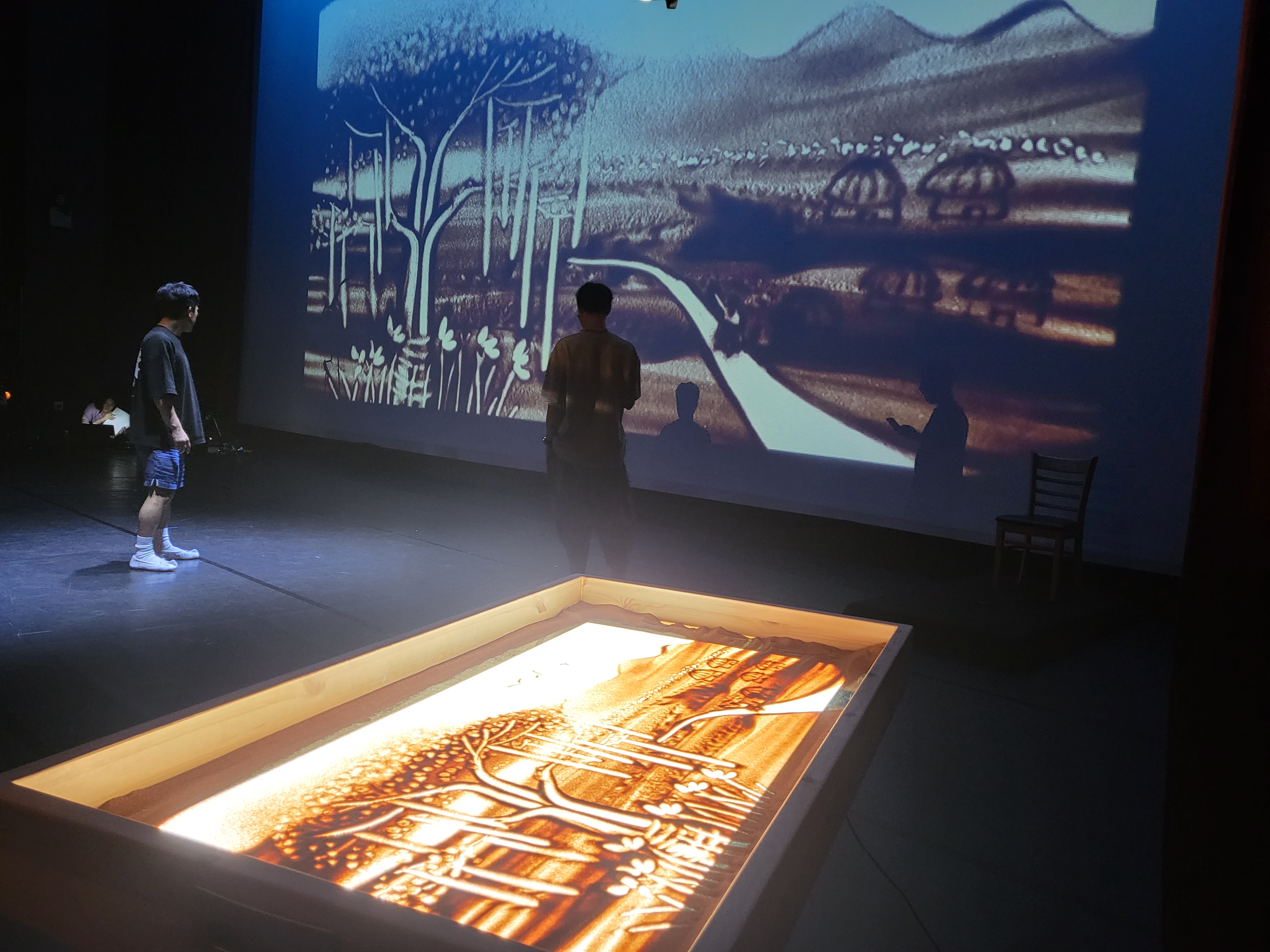 샌드아트가 춤의 해설? 춤의 시작앞에 샌드아트 공연으로 춤의 이야기를 풀어 준다.