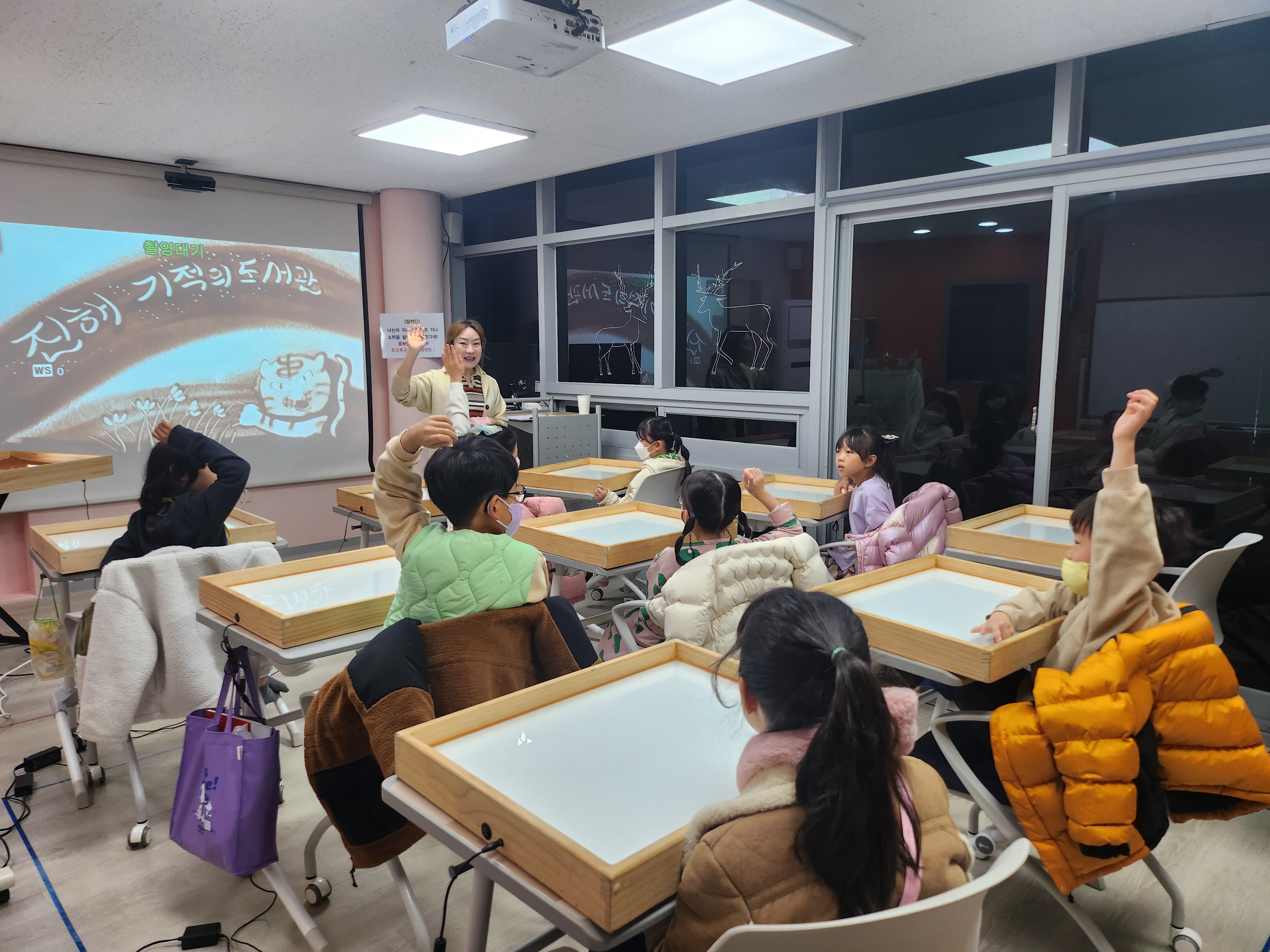 달래기 위하여 도서관에서는 여러 가지 프로그랭 도전 그중 샌드아트 프로그램을 하기 위하여 연락을 주셨다.