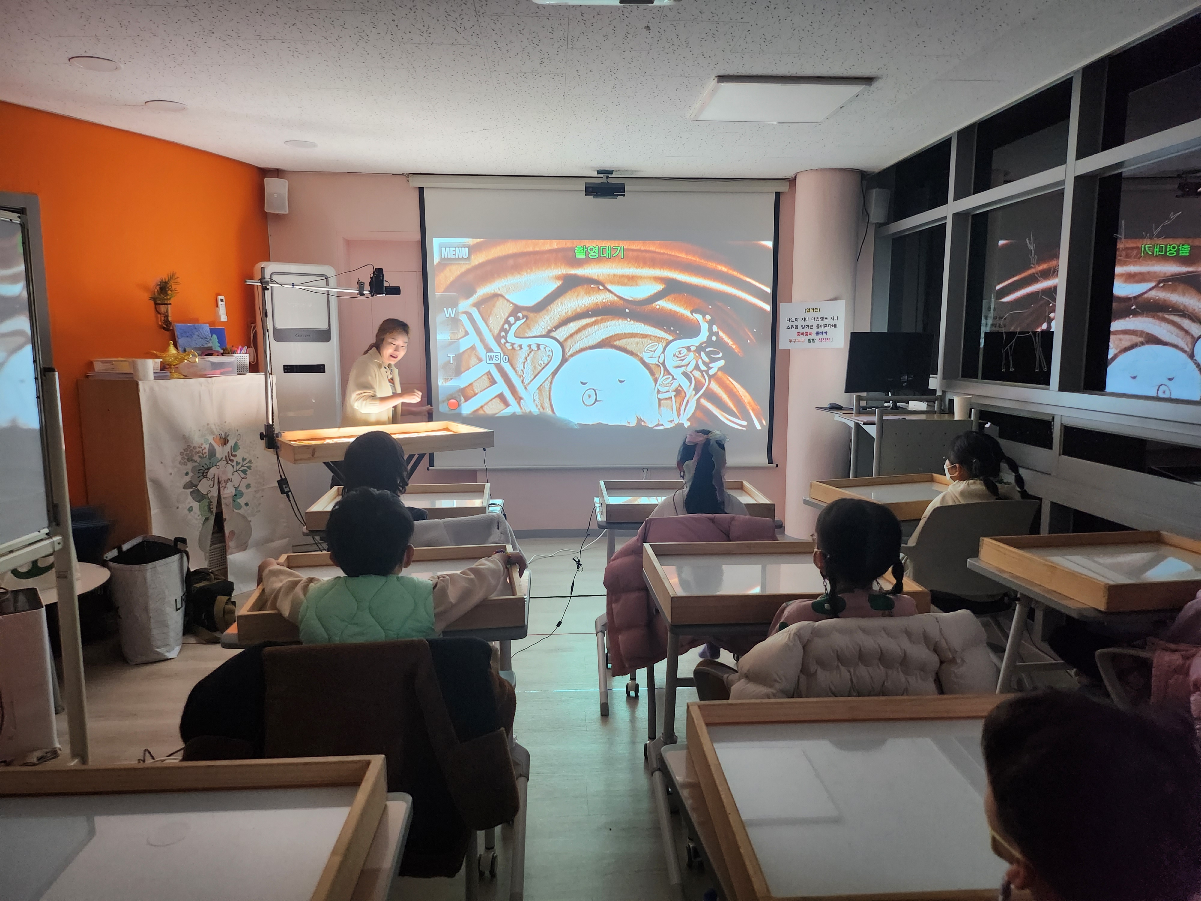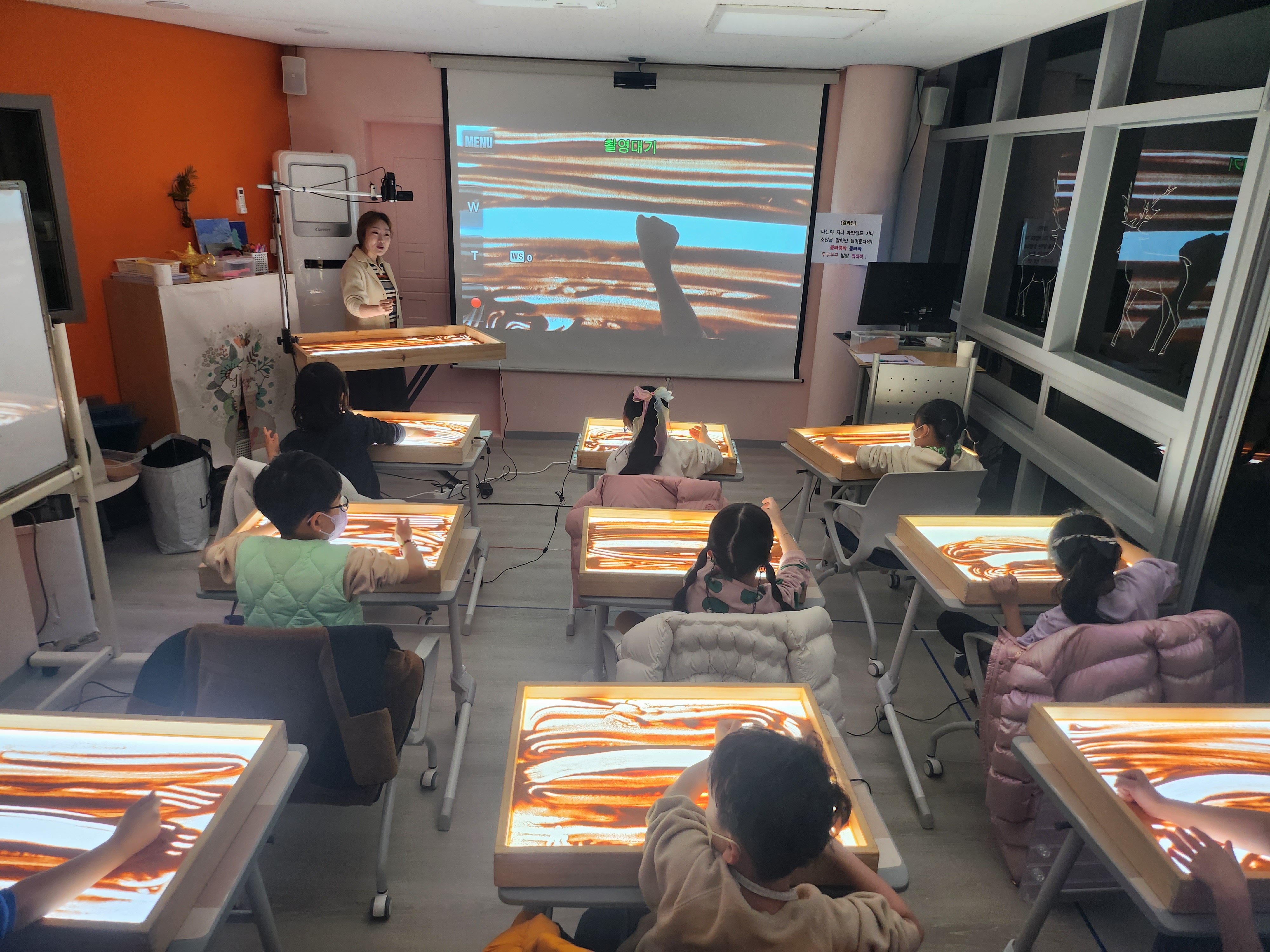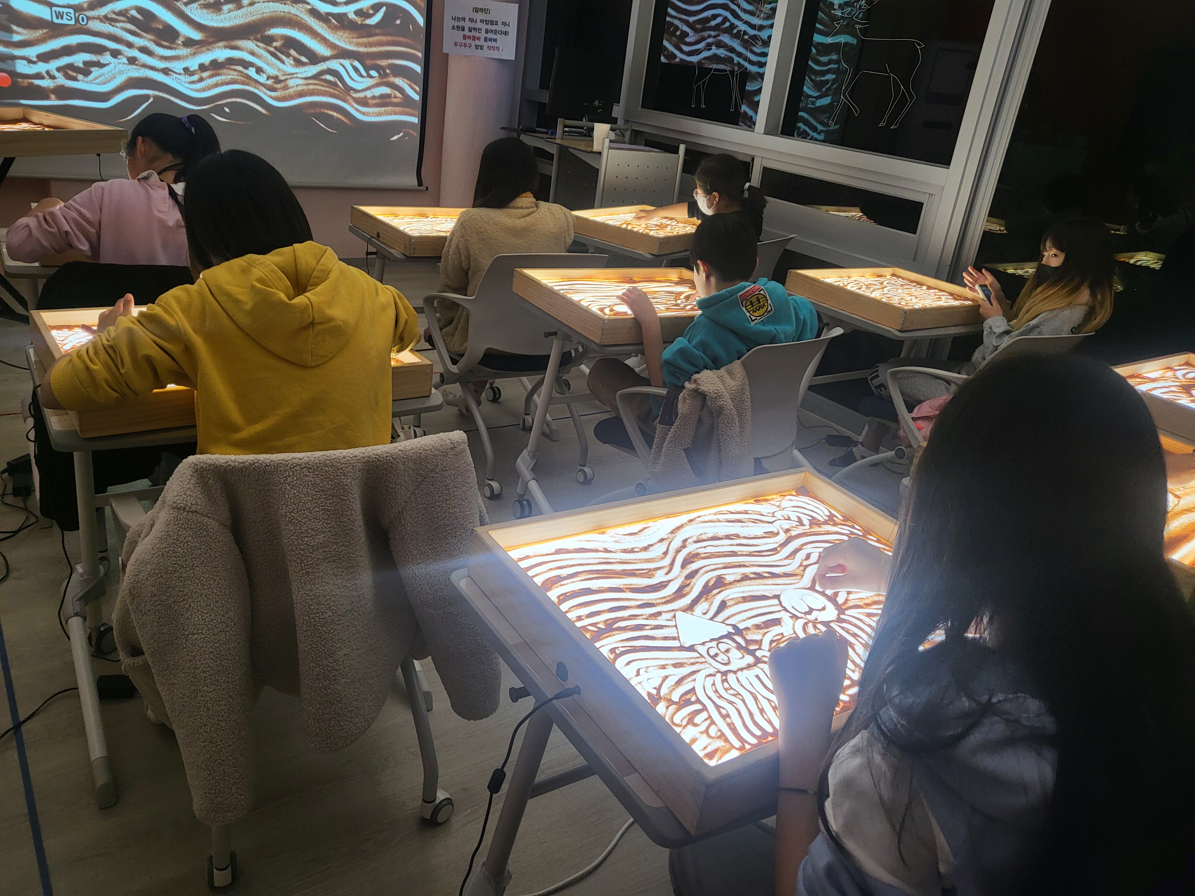 신나는 음악과 함께 하며 샌드아트로 신나는 놀이