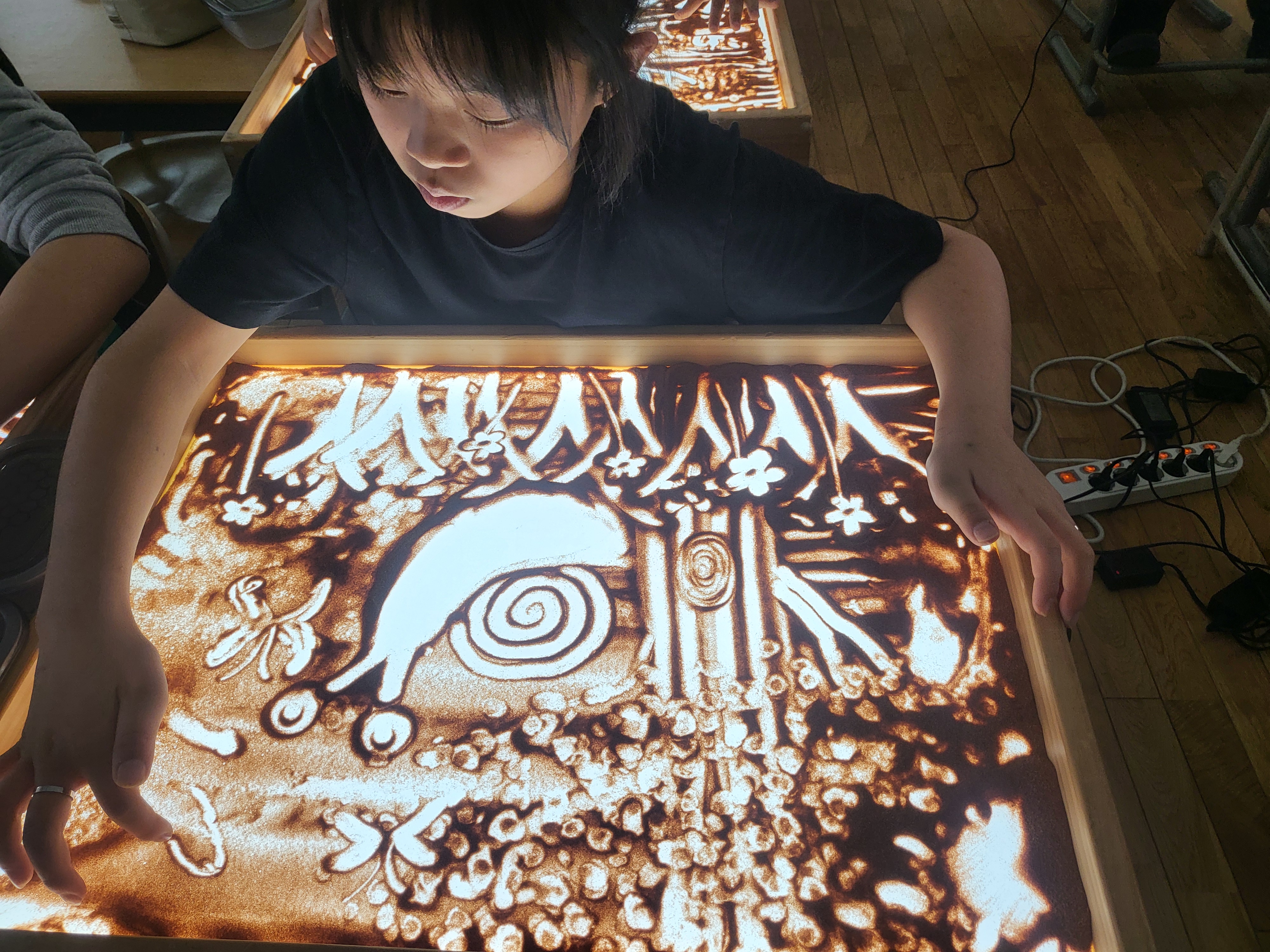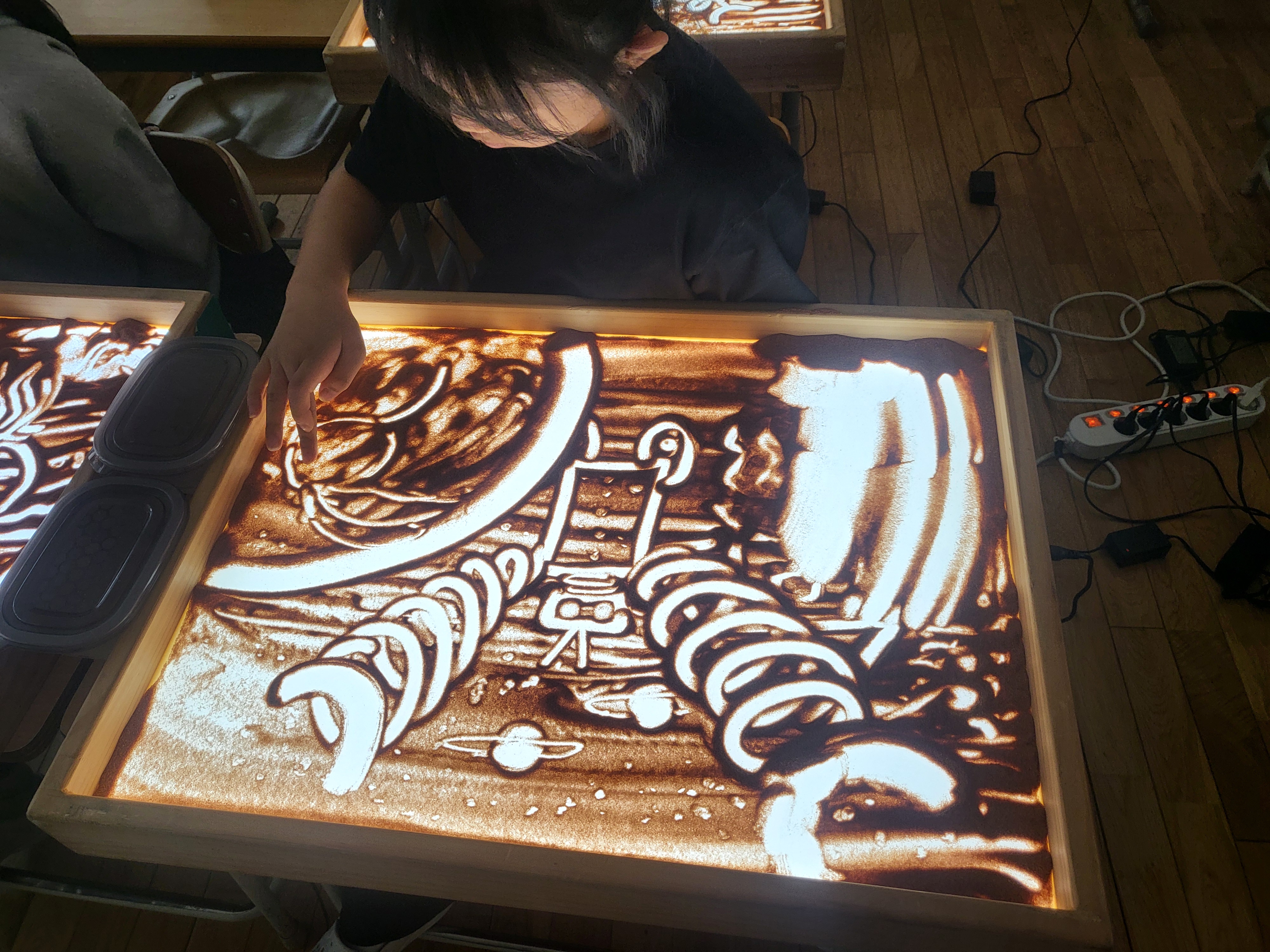 선생님들 입소문 소개로 샌드아트 체험 수업 신청 하셨다고......