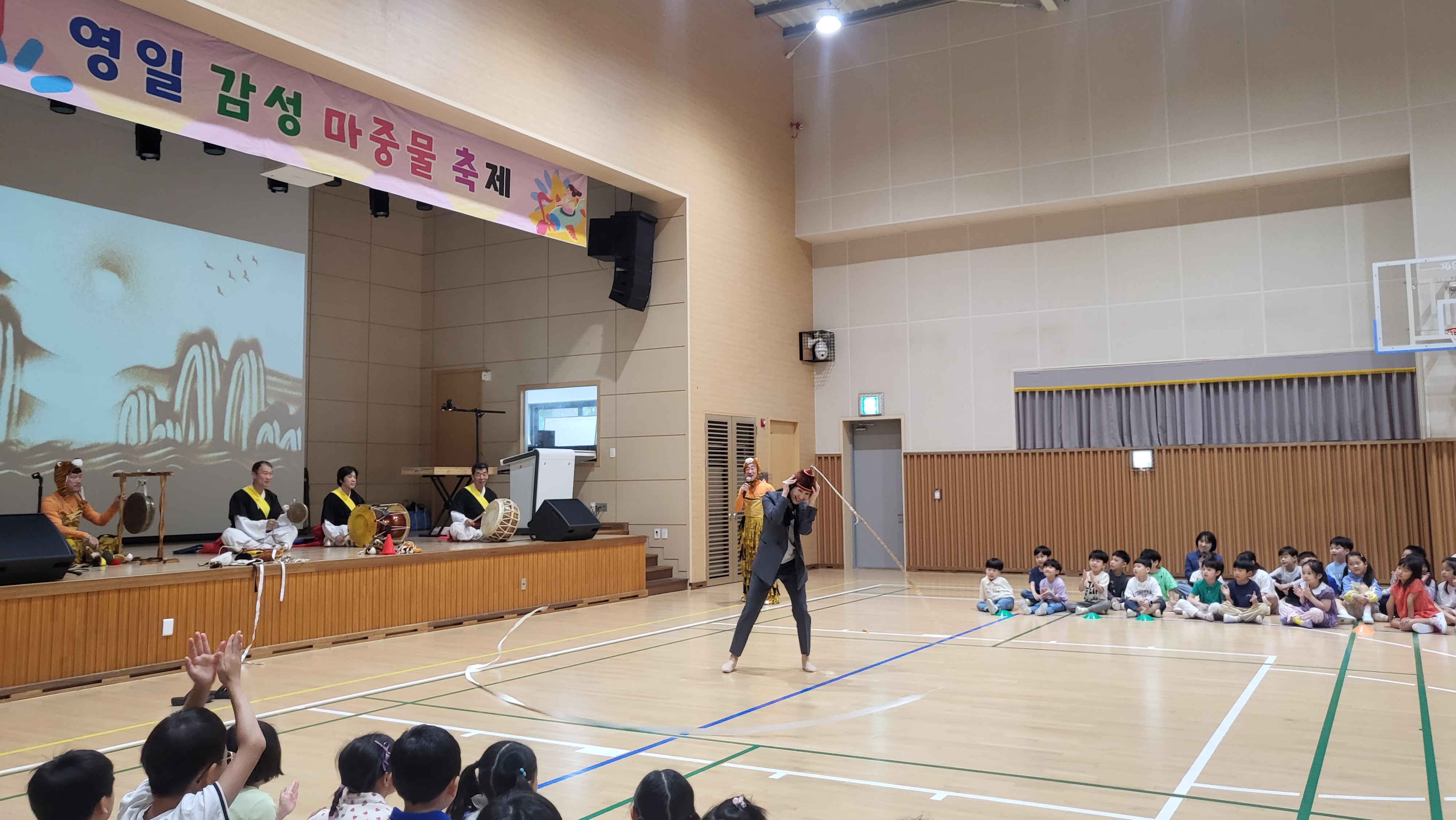아이들 앞에서 재주놀이 환호와 박수!!!!