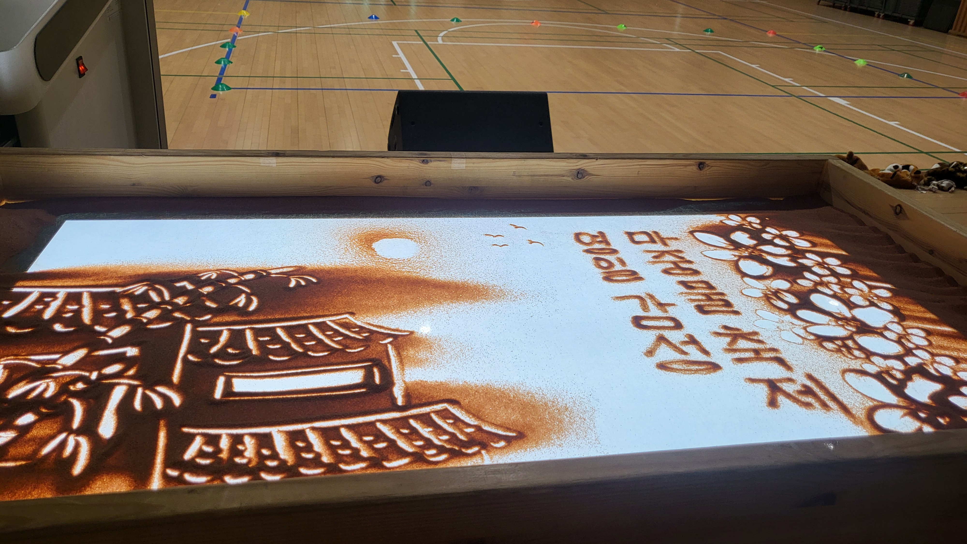 샌드아트 그림으로 아이들에게 오늘의 주제를 알리고