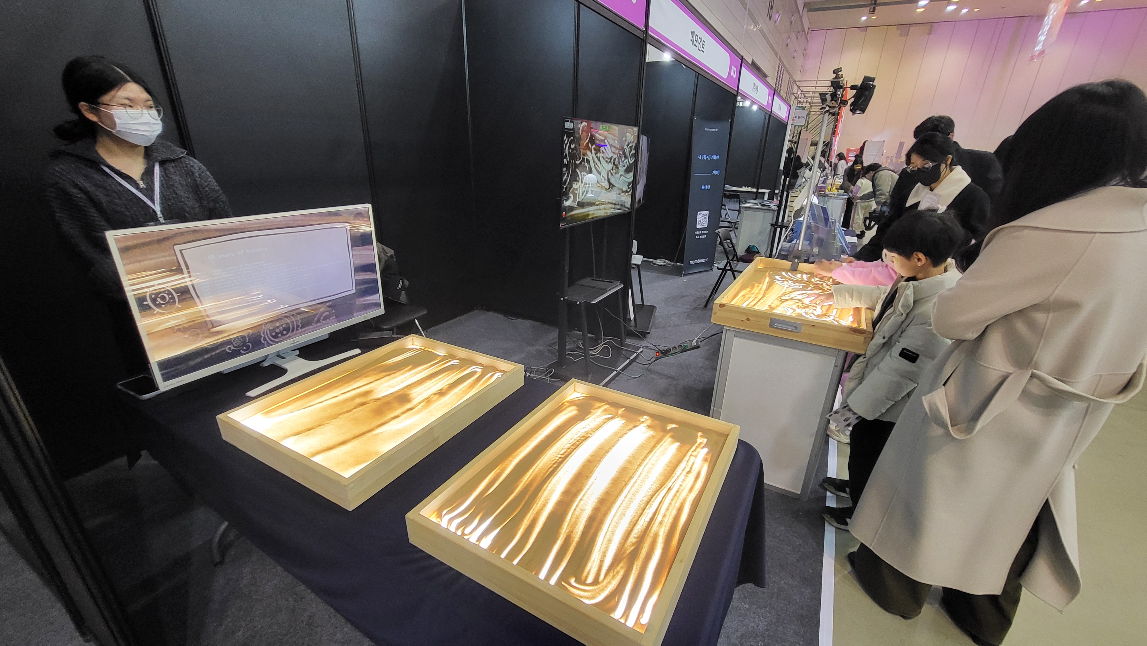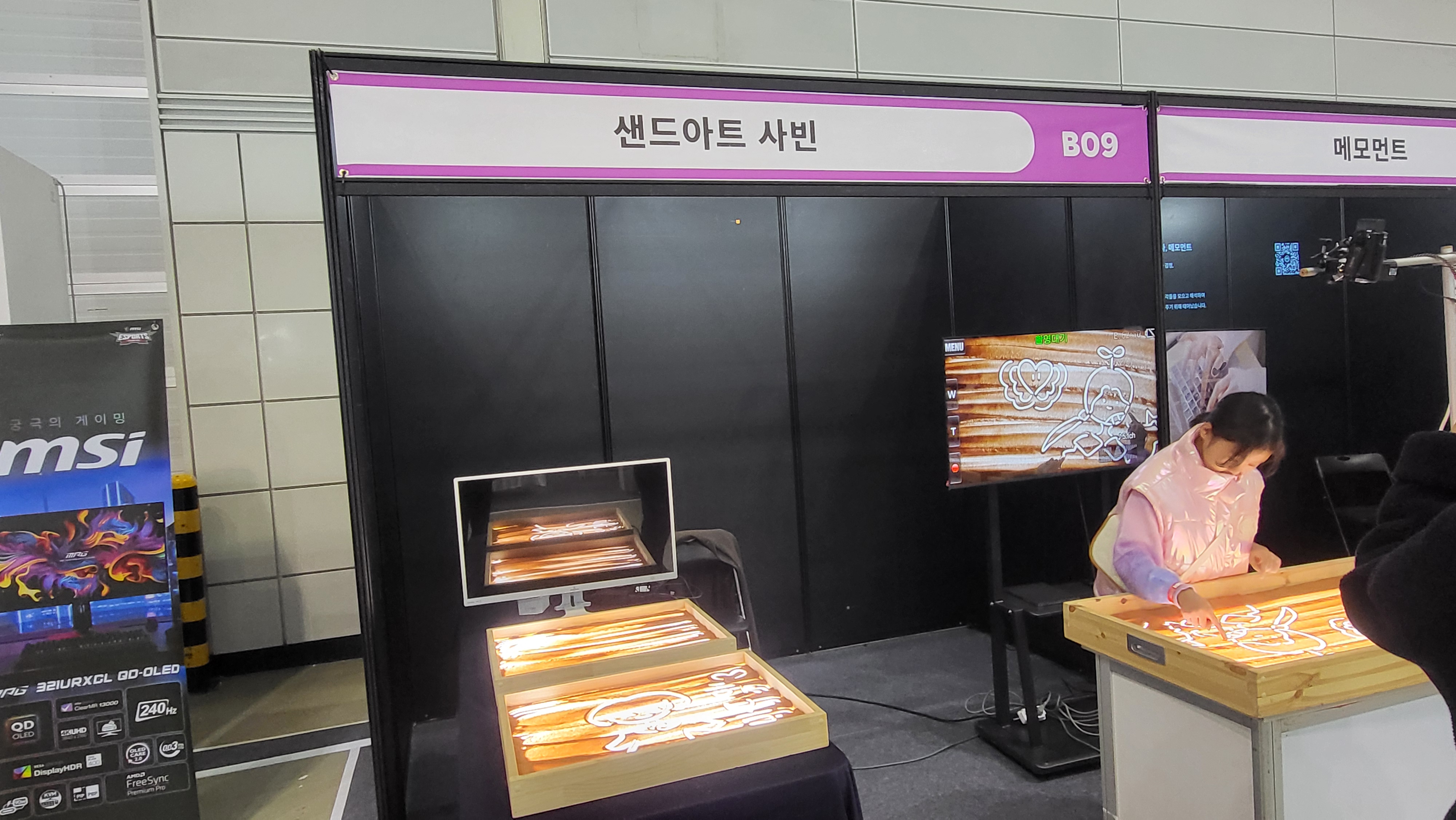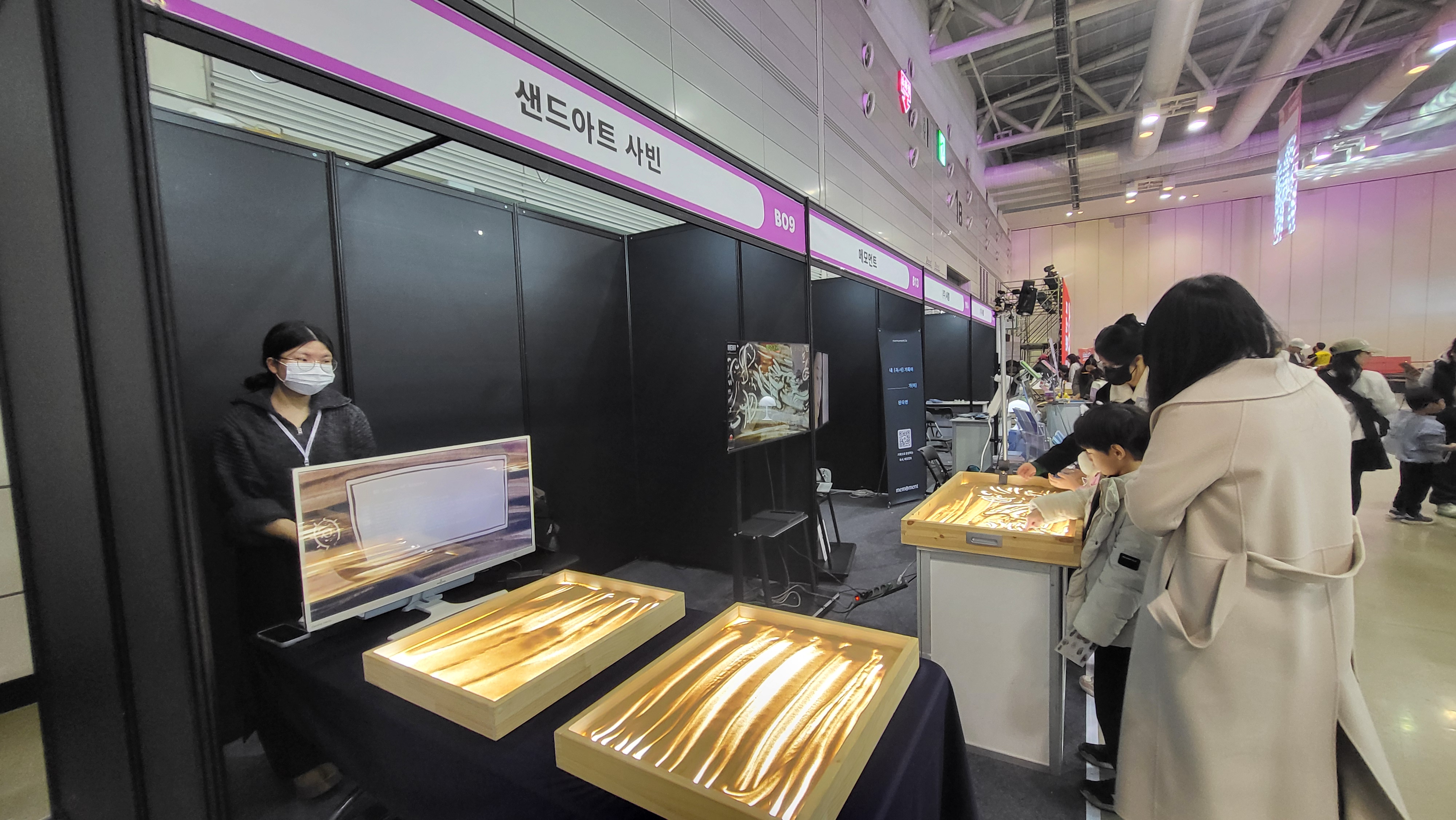 다양한 부스 속 샌드아트 체험