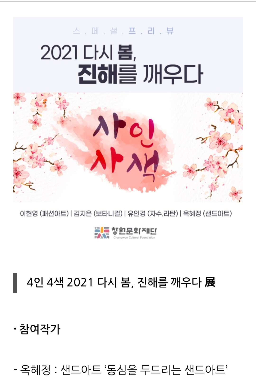 | 샌드아트공연 / 창원시 진해구시민문화 (진해샌드아트공연) (0) | 2022.09.30 |